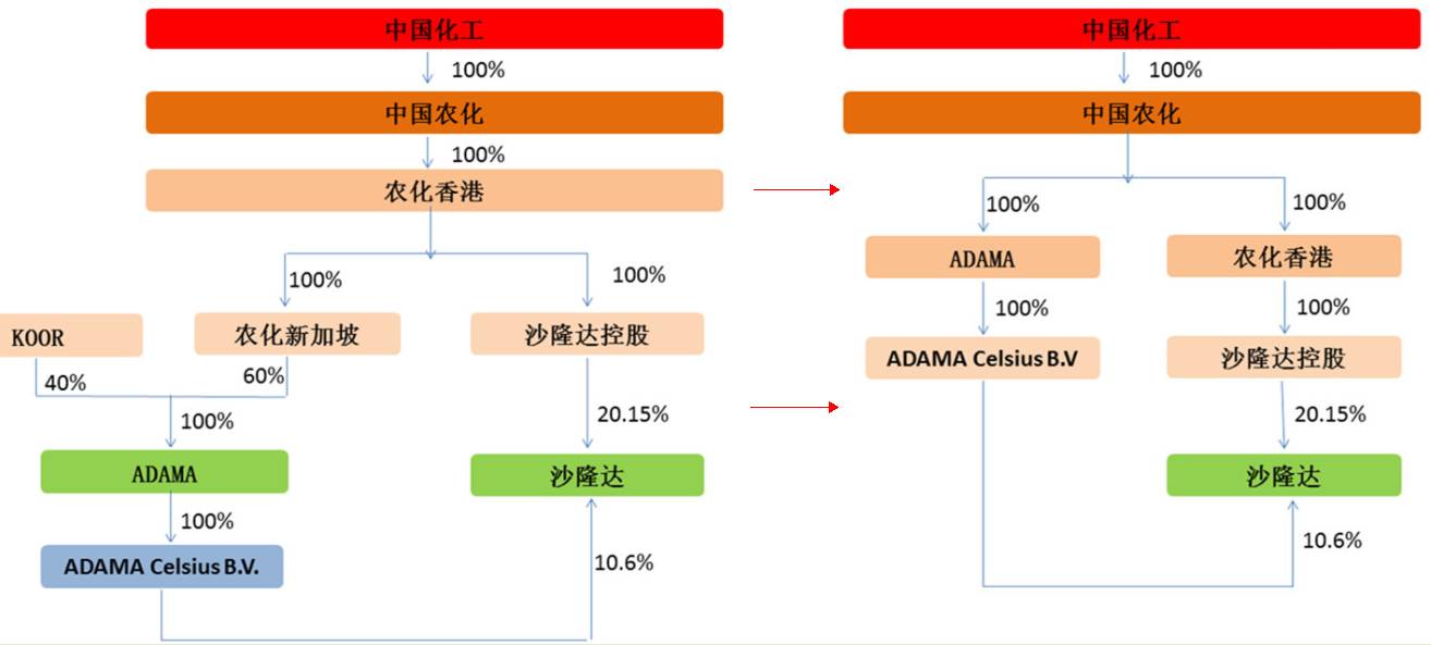 ·2016年7月22日,农化新加坡与ADAMA以色列股东KOOR签署《股权转让协议》, 受让KOOR持有的ADAMA40%的股权。