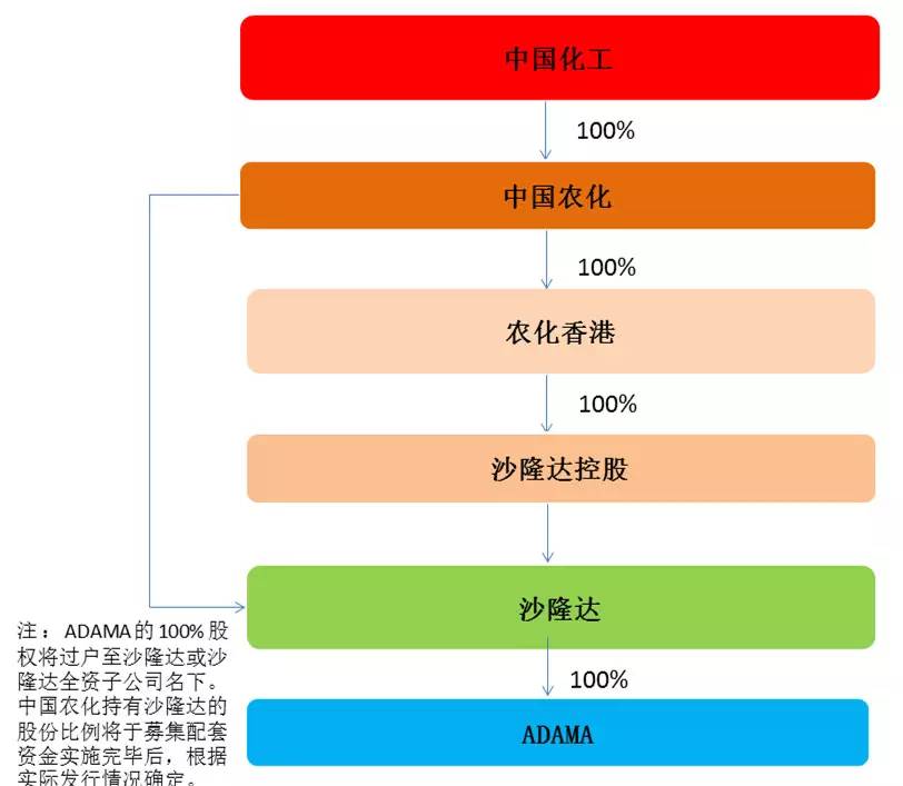其实,2011年10月收购ADAMA 60%的股权后,中国农化就一直想继续收购整合ADAMA。其后坊间不断猜测方案,直至沙隆达2015年8月5日因重大事项申请停牌,并于同年10月公布重组标的为ADAMA,也仍未最终明确重组方案,其间甚至曾传ADAMA更希望前往美国上市。最终停牌1年后,中国农化选择将ADAMA置入沙隆达。