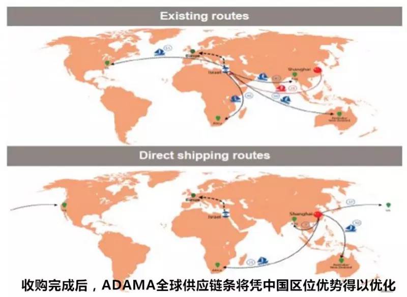 最新统计显示,本次标的公司ADAMA已于2016年超越杜邦(DuPont),成为全球第六大农化公司。此外,ADAMA还是世界最大的非专利农药生产企业。其总部位于以色列,产品销往全球100多个国家。沙隆达是国内最早的农药上市公司之一,于2005年被并购纳入中国农化麾下。为打造中国的全球农化旗舰,中国农化对ADAMA 心仪已久。